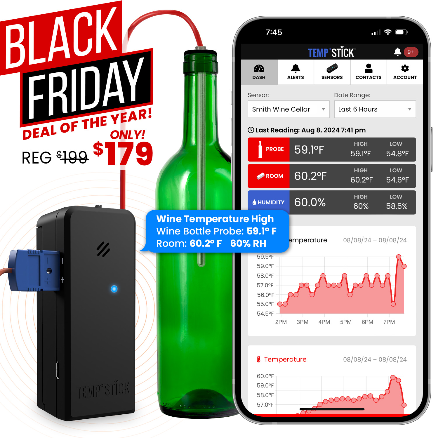Wine Cellar Temperature and Humidity Monitor by Temp Stick